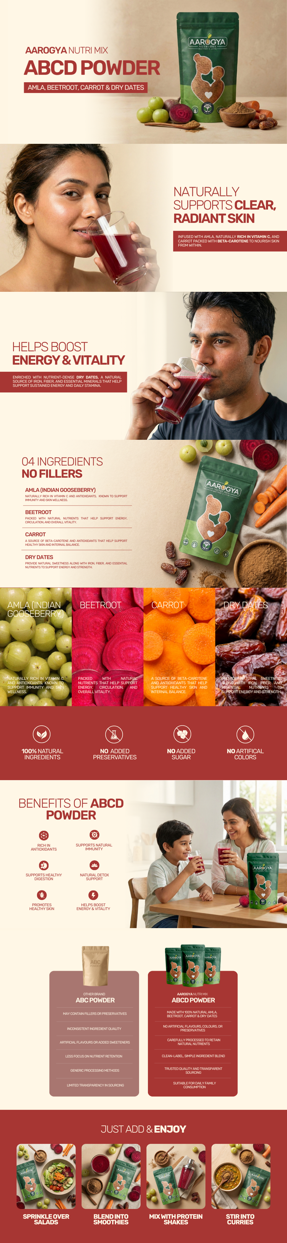 ABCD (Amla, Beetroot, Carrot & Dry Dates) Powder – Aarogya Nutri Mix Skip to content
